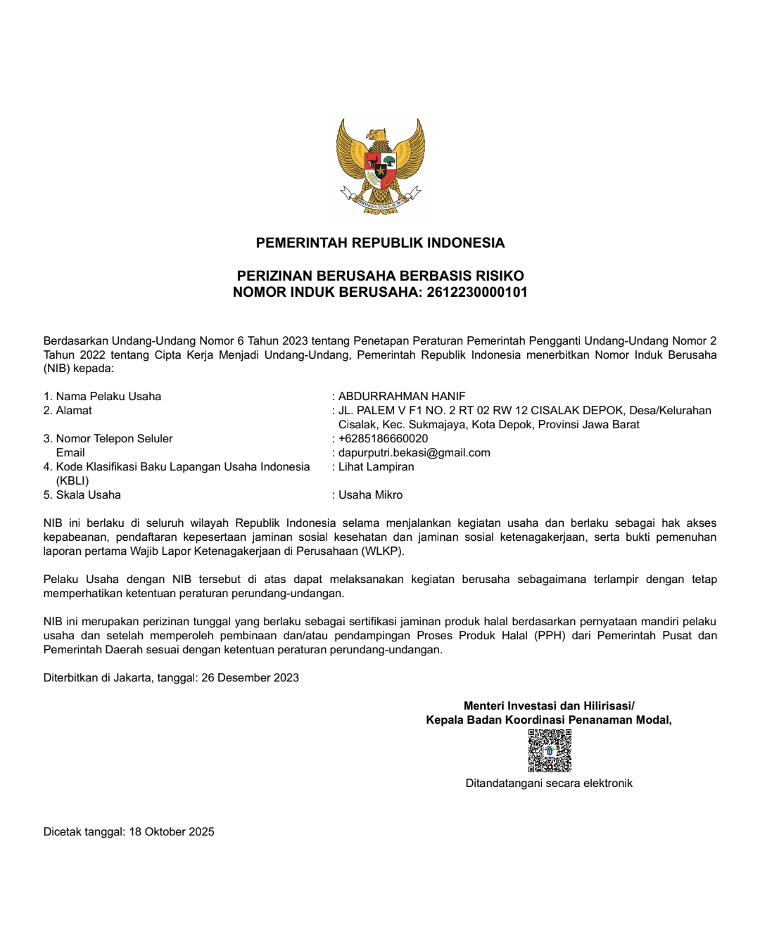 Dokumen resmi yang membuktikan perusahaan telah terdaftar secara legal.