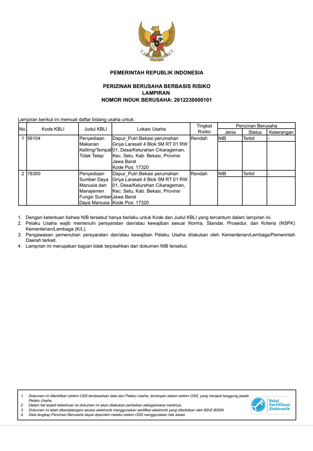 Dokumen pendukung usaha, sertifikasi, dan izin operasional lainnya.